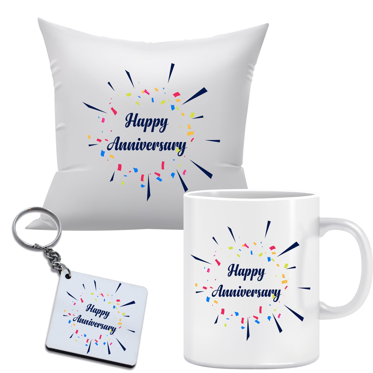 Anniversary Combo includes Mug, Key chain, 12x12 Cushion with filler | Combo8