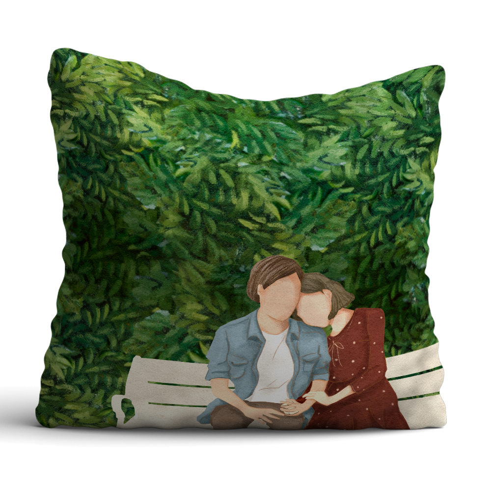 Couple sitting in Garden printed Cushion