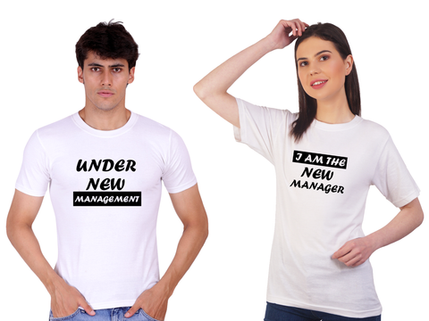 Under New Management couple cotton T-shirt | Pre Wedding | T117 (2 Tshitrs)